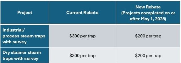 Nicor Gas commercial customers find great value in our steam trap rebates. We previously announced that, effective May 1, prescriptive steam trap rebates decreased to $200 per trap. Please make sure that you are using the new applications with the correct amounts!