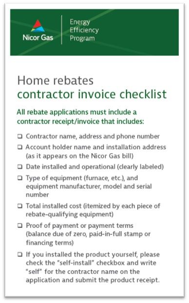 Use our invoice checklist and invoice sample as a guide to ensure all required information is on the invoice that is submitted with a rebate application. Make sure the invoice includes: